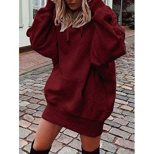 Per donna Mini Abito Abito a Tubino Casual Vacanza Uscire Vestibilità comoda Tinta unica Manica Lunga Con Cappuccio Giallo Vino Blu Grigio Primavera Autunno Inverno