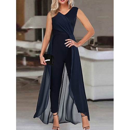 Per donna Normale Tuta Elegante Tinta unica Senza Maniche Scollo a V Ricamato Vita alta Vacanza Quotidiano Vestibilità regolare Blu marino Estate