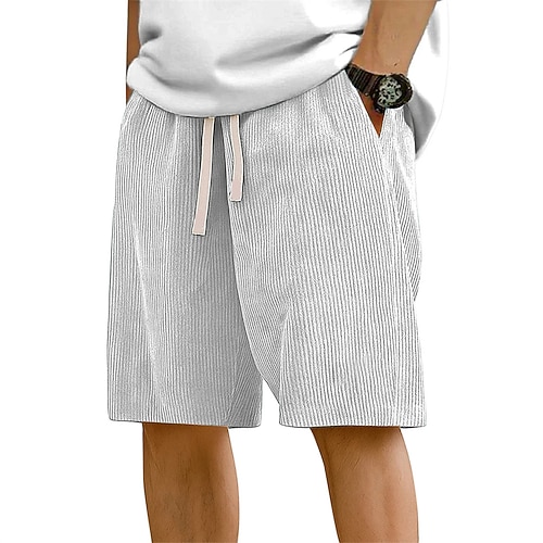 Per uomo Pantaloncini Estivi Shorts da Spiaggia Pantaloncini casual Pantaloncini di velluto a coste Coulisse Elastico in vita Tinta unica Comodità Lunghezza al ginocchio Quotidiano All'aperto