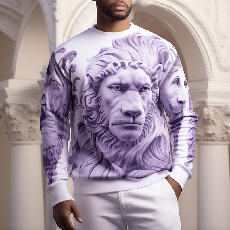 Men's Graphic Animal Lion Sweatshirts Golf Pullover Sweatshirt Long Sleeve Sweatshirt Crew Neck Fashion Daily Casual 3D Print Vacation Holiday Going out Print Spring Fall