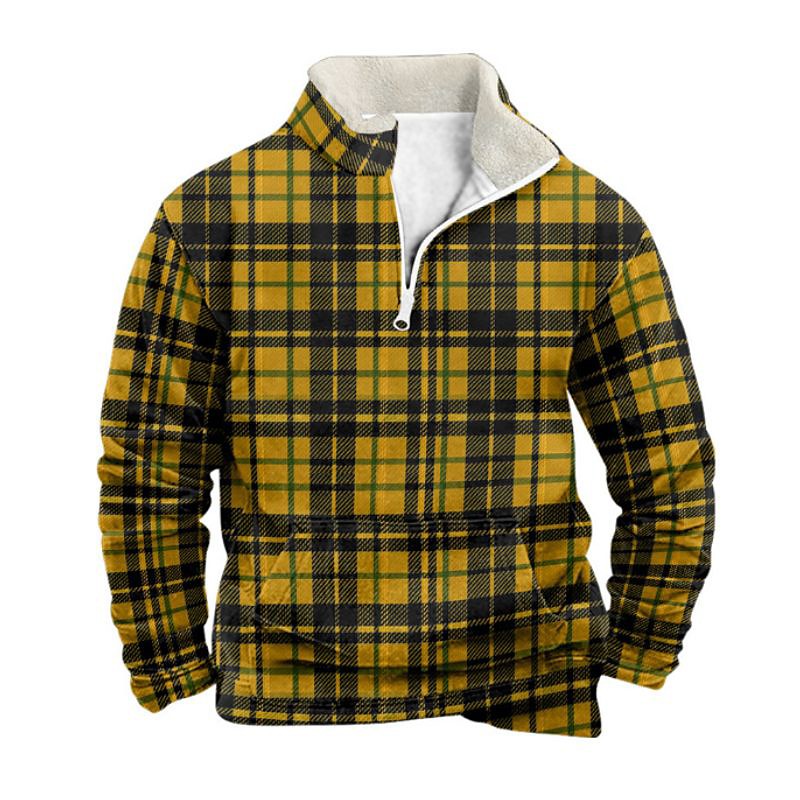 Men's Plaid / Check Printing Quarter Zip Sweatshirt Holiday Sweatshirt Sweatshirts Long Sleeve Sweatshirt Half Zip Vintage Retro Print Holiday Going out Print Fall Winter