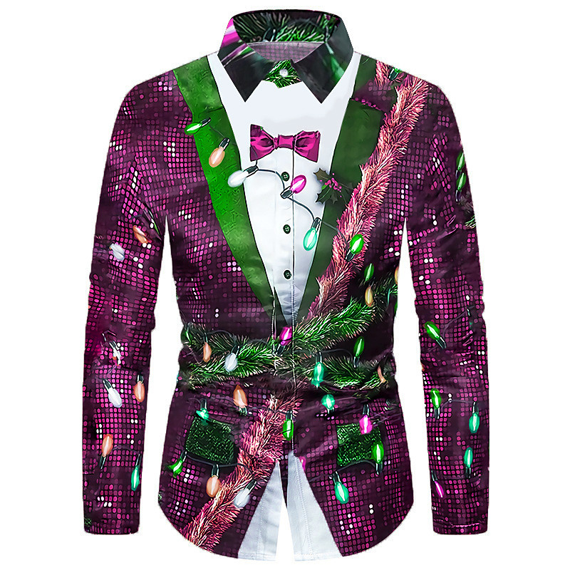 Men's Ugly Christmas Shirt Long Sleeve Shirt Turndown Christmas Street 3D Print Red Blue Purple Green Print Button-Down Clothing Apparel Fashion Designer Casual Soft
