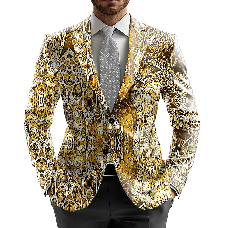Men's Blazer Jacket Formal Stylish Casual Daily All Seasons 100% Polyester Weaving Jeweled 3D Print Buttons Comfortable Single Breasted Blazer Red Gold Green
