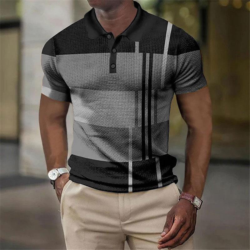Men's Geometric Waffle Polo Shirts Golf Shirt Short Sleeve Polo Shirts Collared Shirts Vacation Wear Formal Wear Festival Wear Buttons 3D Print Summer Spring Blue