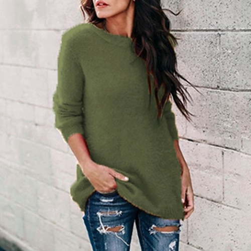 Damen Pullover Strassenmode Büro Brautkleider schlicht Feste Farbe Rollkragen Strick Langarm Lange Oberteile Stricken Heim Schwarz Weiß Herbst Winter