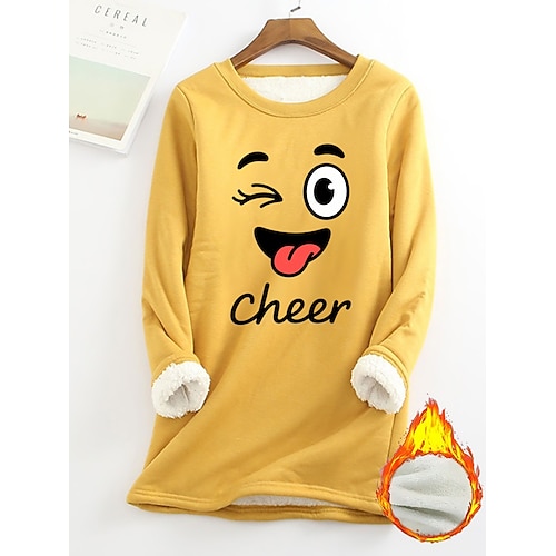 Damen Sweatshirt-Pyjama mit Fleecefutter Pullover Sweatshirt Pullover Sweatshirts Buchstabe Warm Streetwear Lässig Langarm Rundhalsausschnitt Lange Oberteile Heim Alltagskleidung Lässig Druck Schwarz