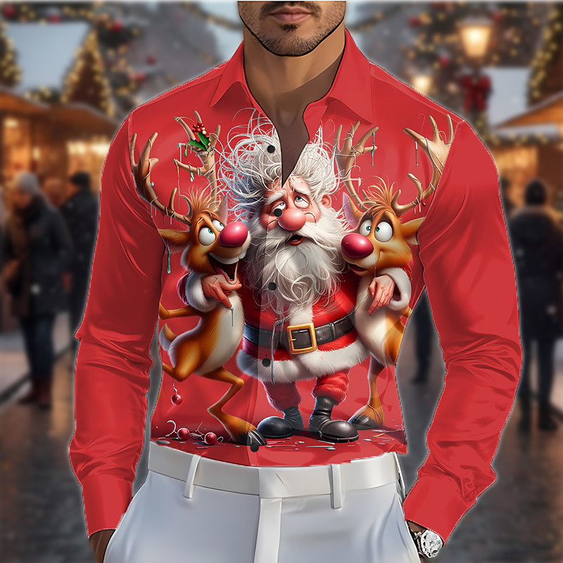 Christmas Men's Santa Claus Reindeer funny christmas Shirt Satin Shirt Dress Shirt Long Sleeve Fashion Casual Party Holiday Spring Fall Turndown 3D Print Button Up Shirts Black White Red