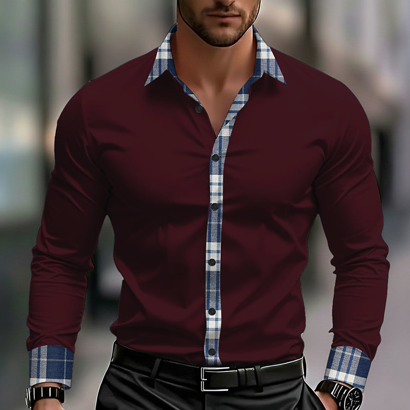 Men's Geometric Grid / Plaid Shirt Button Up Shirt Casual Dress Shirt Long Sleeve Fashion Casual Outdoor Dailywear Spring Fall Turndown 3D Print Collared Shirts Black White Wine Dark Blue Gray