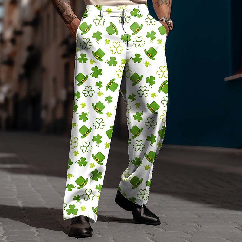 Christmas Men's Christmas Scene Printed Pants Snowflake Business Casual 3D Print Trousers Outdoor Street Wear to work Polyester Black and White Wine Yellow S M L High Elasticity Pants