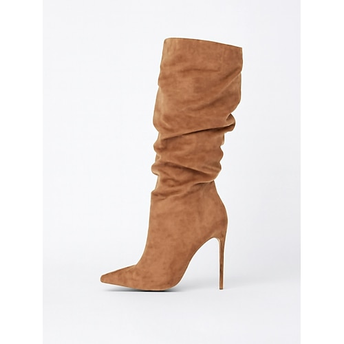 stivali stiletto scamosciati da donna, stivali a punta con tacco alto e a metà polpaccio in vari colori per outfit autunnali e invernali alla moda