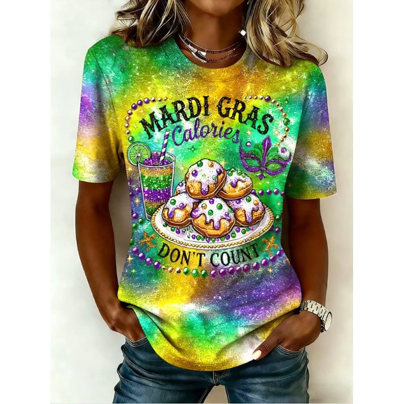 Carnival Mardi Gras Women's T Shirt Graphic Vintage Fashion Stylish Short Sleeve Crew Neck Regular Tops Daily Print Black and Red White Yellow Light Green Purple Summer Spring