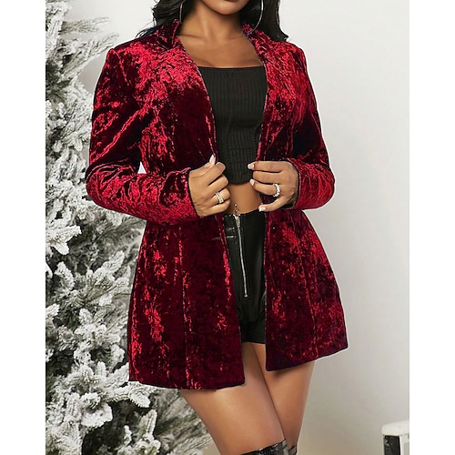 Per donna Blazer di velluto Confortevole Bottoni Elegante Vintage Tropicale Casual Tinta unica Quotidiano Ferie Uscire Abiti da festa Scollo a V profondo Vestibilità regolare Manica Lunga Capispalla