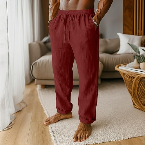 Per uomo Pantaloni di lino Pantaloni Pantaloni estivi Pantaloni di garza A cordoncino Vita elastica Gamba dritta Liscio Comfort Traspirante Lunghezza intera Interni Informale Giornaliero Sportivo