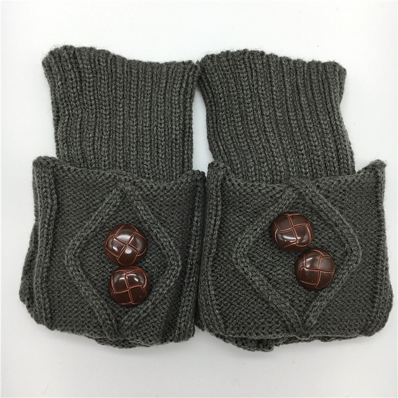 Women Winter Knit Boot Cuffs with Buttons, Fashion Diamond Pattern Short Leg Warmers, Warm Crochet Sock Covers for Boots