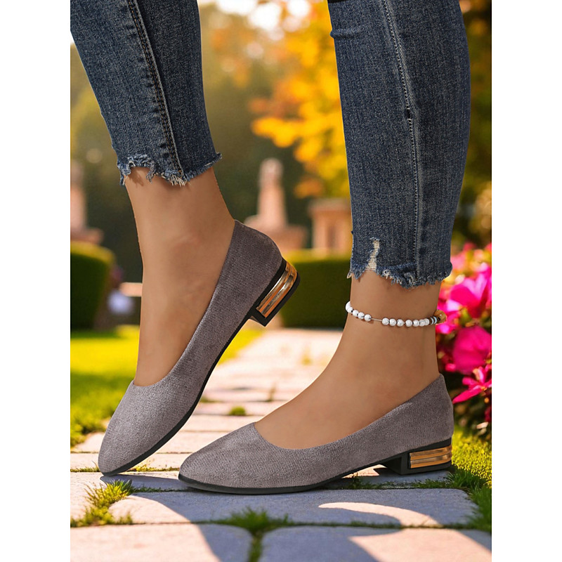Women's White Textured Ballet Flats – Round Toe Slip-On Casual Shoes with Gold Heel Accent for Ladies, Perfect for Daily Commute, Garden Strolls, or Weekend Outings