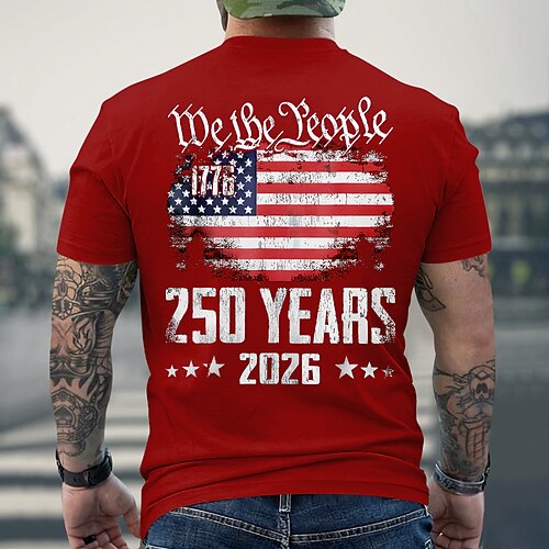 4 luglio 2026 250° Giorno della Memoria Maglietta Uomo 3D Print Bandiera degli Stati Uniti Collo a Giro Maglietta a Maniche Corte Quotidiano Strada