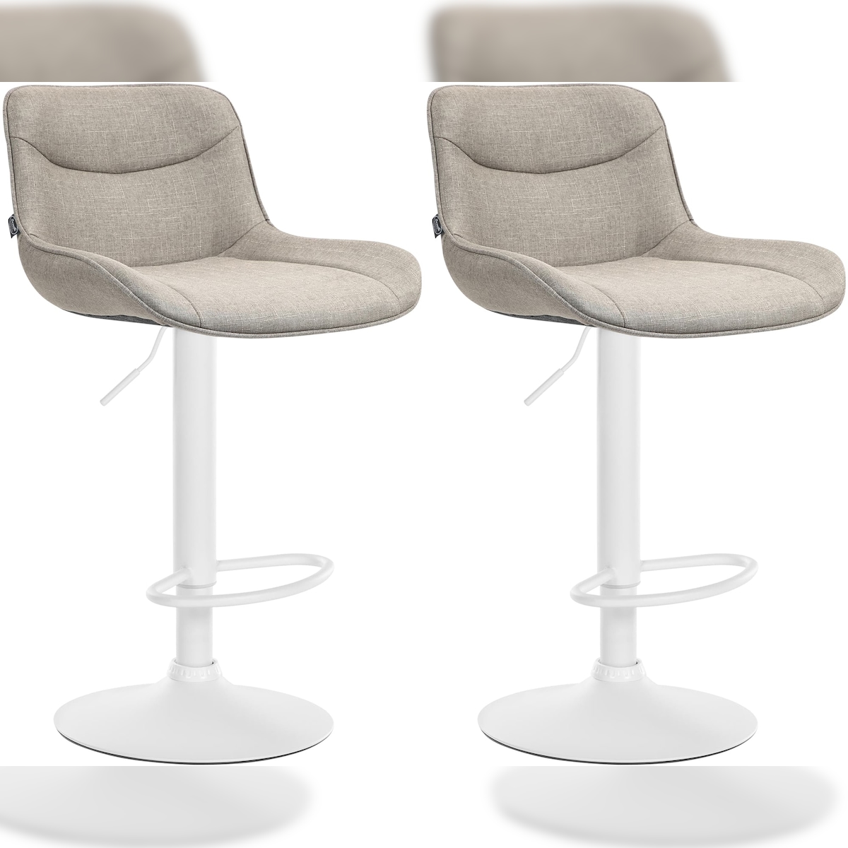 DELUKE 2er Set Barhocker RAGAD - Stoff Taupe 49x51x85 cm Weiß | Barstuhl Höhenverstellbar Mit Lehne Drehbar Tresenhocker Tresenstuhl Kneipenhocker