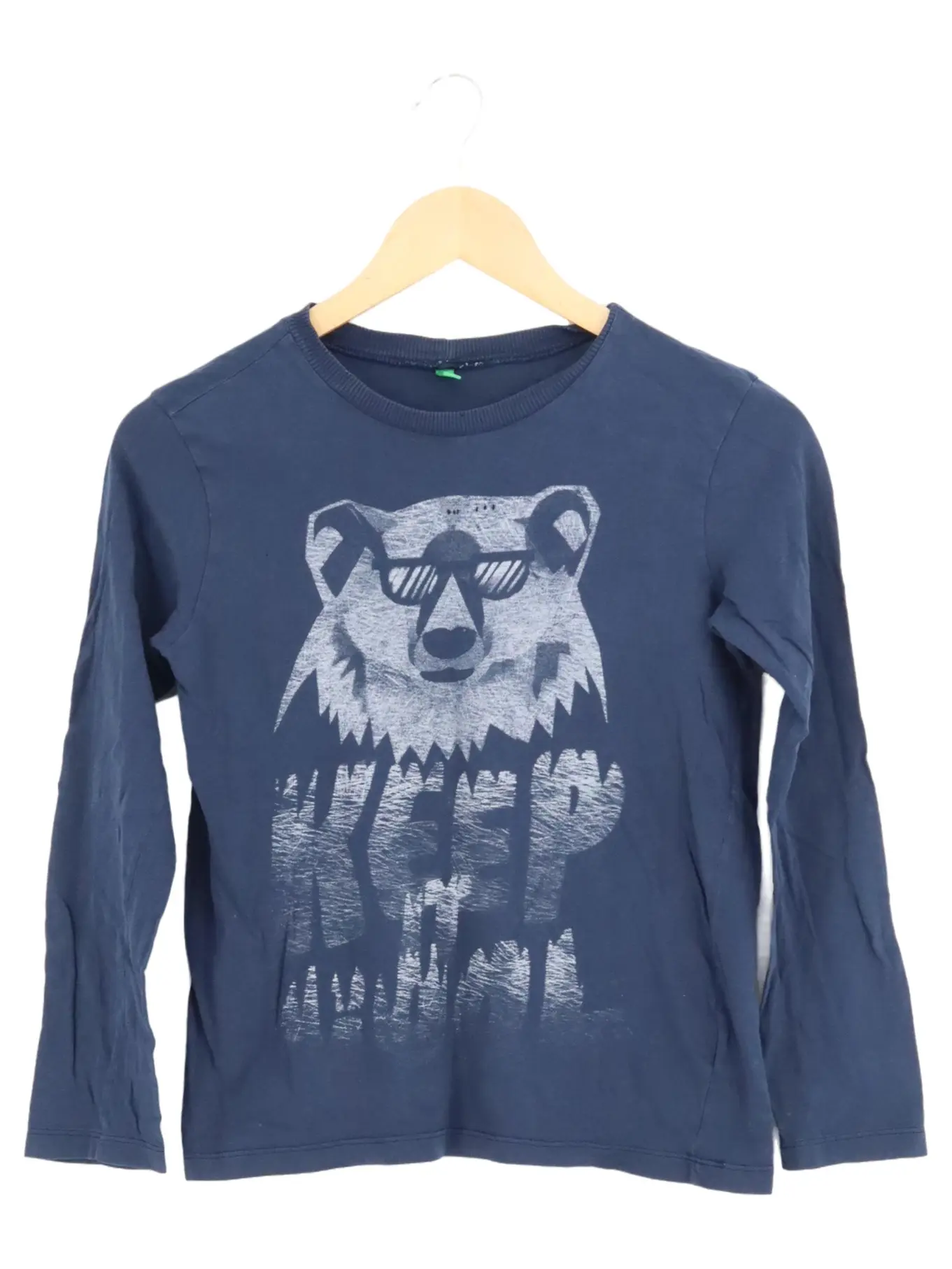 UNITED COLORS OF BENETTON Benetton Kinder Langarmshirt Blau Bärenmotiv Gr. 150