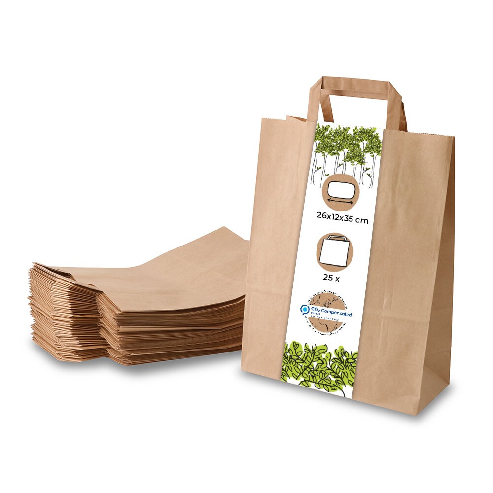 BIOZOYG 25 Stück Tragetasche L 26 x 12 x 35cm Papiertüte reißfest braun kompostierbar Einkaufstasche Papiertasche Einkaufstüte umweltfreundlich