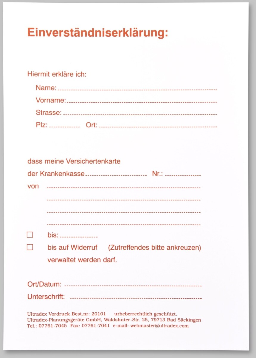 Einverständnis-Erklärungen B148xH210mm weiß DIN A5 VE 50 Stück