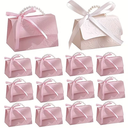 15 Stück Valentinstag Geschenkkisten mit pinken weißen Perlengriffen – Stilvolles elegantes florales Design Tragbare Papiergeschenktüten Perfekt für Valentinstag Hochzeiten Geburtstage Partys
