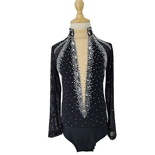 Maglia da pattinaggio artistico Per uomo Ragazzi Pattinaggio sul ghiaccio Top Nero Patchwork Spandex Alta elasticità Allenamento Professionale Competizione Vestiti da pattinaggio sul ghiaccio