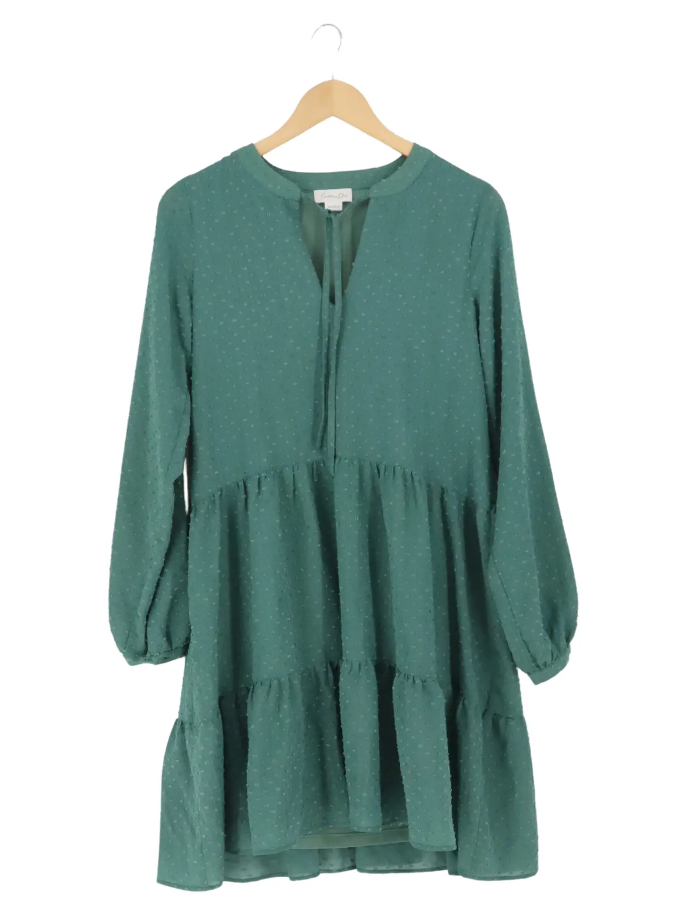 COTTON CLUB Blusenkleid XS Grün Rüschen Vintage-Look Damen