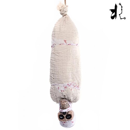 Decorazione di Halloween con mummia appesa - horror invertito con occhi rossi luminosi in tessuto, alimentata a batteria (escluse le batterie AA), ideale per case horror e decorazioni per festival.
