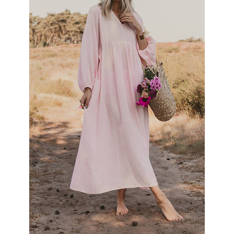 Women's Pink Orange Rose Red Summer Spring Maxi Dress Faux Cotton Linen Casual Dress Basic Modern Daily Weekend Loose Fit Plain V Neck