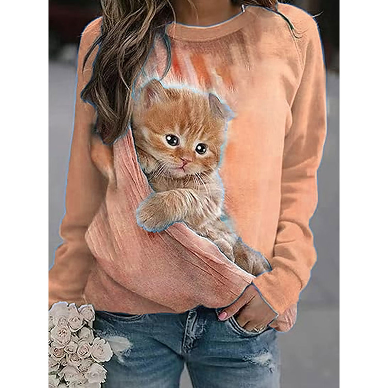 Women's Pullover Graphic Animal Casual Long Sleeve Crew Neck Regular Tops Casual Street Dailywear Print Blue White Pink Orange Green Fall Winter