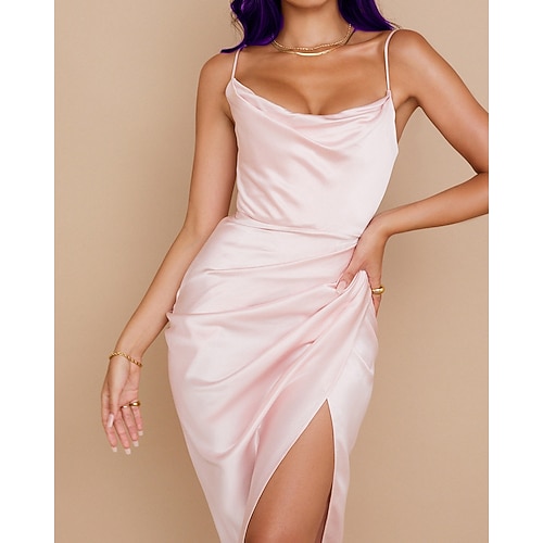 Per donna Camicia da Notte Casual Morbido Raso Colore Puro Senza schiena Vestiti Quotidiano Casa Da letto Senza Maniche Spalline Nero Champagne Rosa Rosso Viola Estate Vestibilità regolare