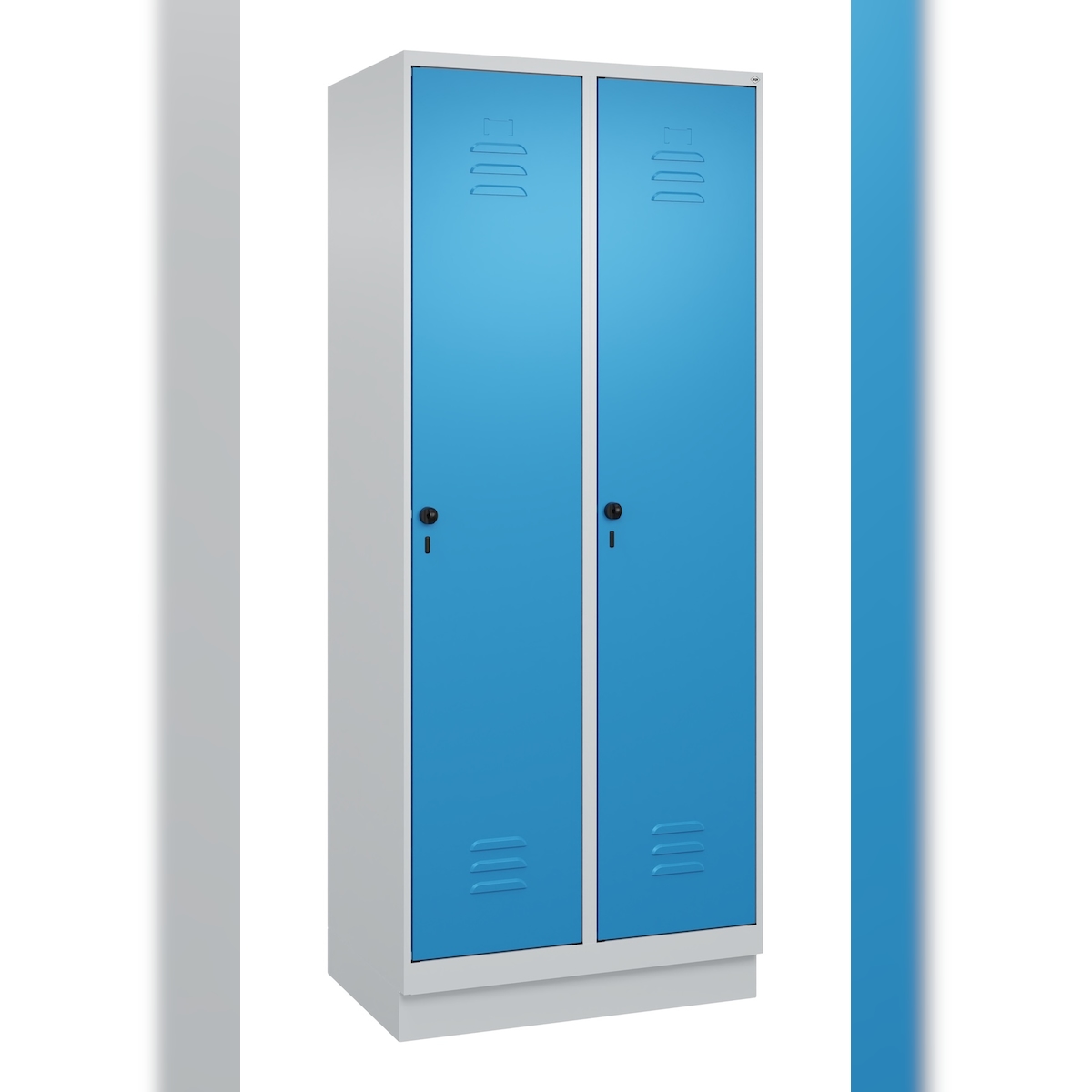 C+P Spind Classic PLUS, Sockel, 2 Abteile, HxBxT 195x80x50cm, Sicherheitsdrehriegel, Hellgrau/Lichtblau von PROREGAL