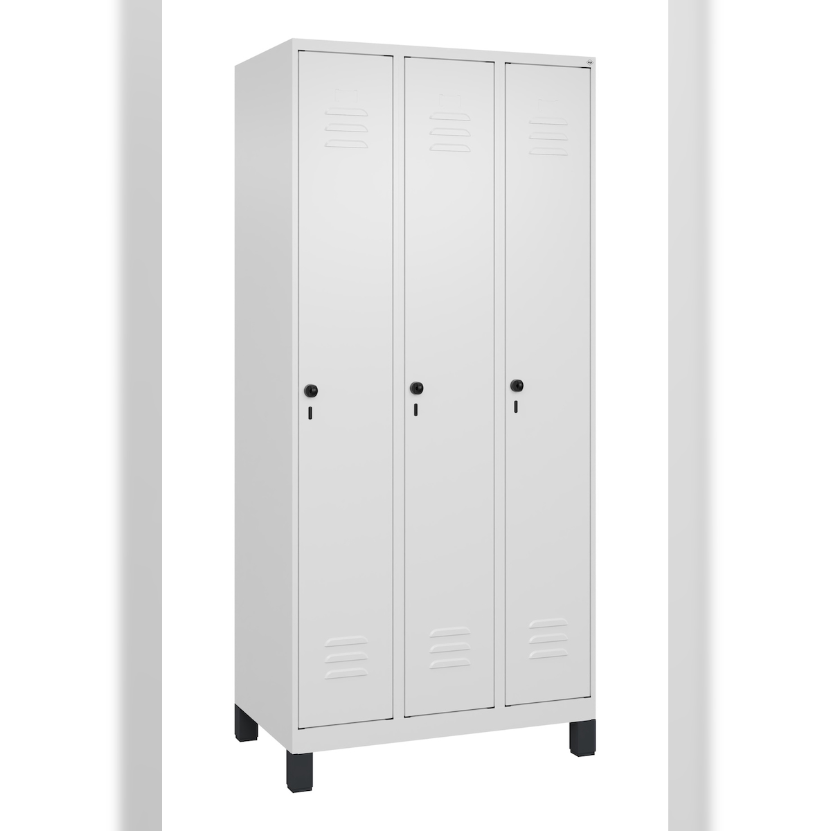 C+P Spind Classic PLUS, Füßen, 3 Abteile, HxBxT 195x90x50cm, Sicherheitsdrehriegel, Verkehrsweiß von PROREGAL
