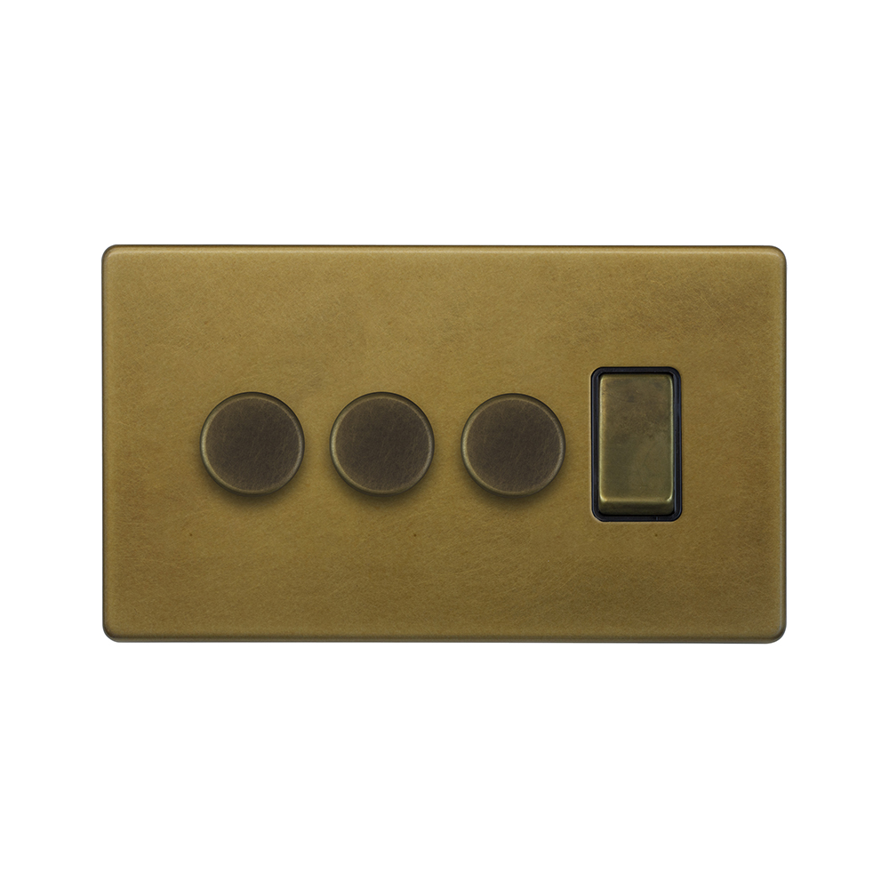 Soho Lighting Old Brass 4 Gang Switch with 3 Dimmers (3 x 2-Way intelligent Dimmer & 1 x 2-Way Switch)
