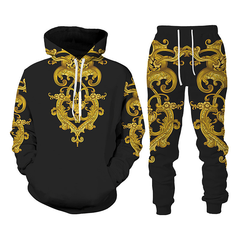 Men's Tracksuit Hoodies Set Black And White Black WhiteBlack Yellow Light Grey Hooded Graphic Tiger 2 Piece Print Sports Outdoor Casual Sports 3D Print Basic Streetwear Casual Fall Spring Clothing