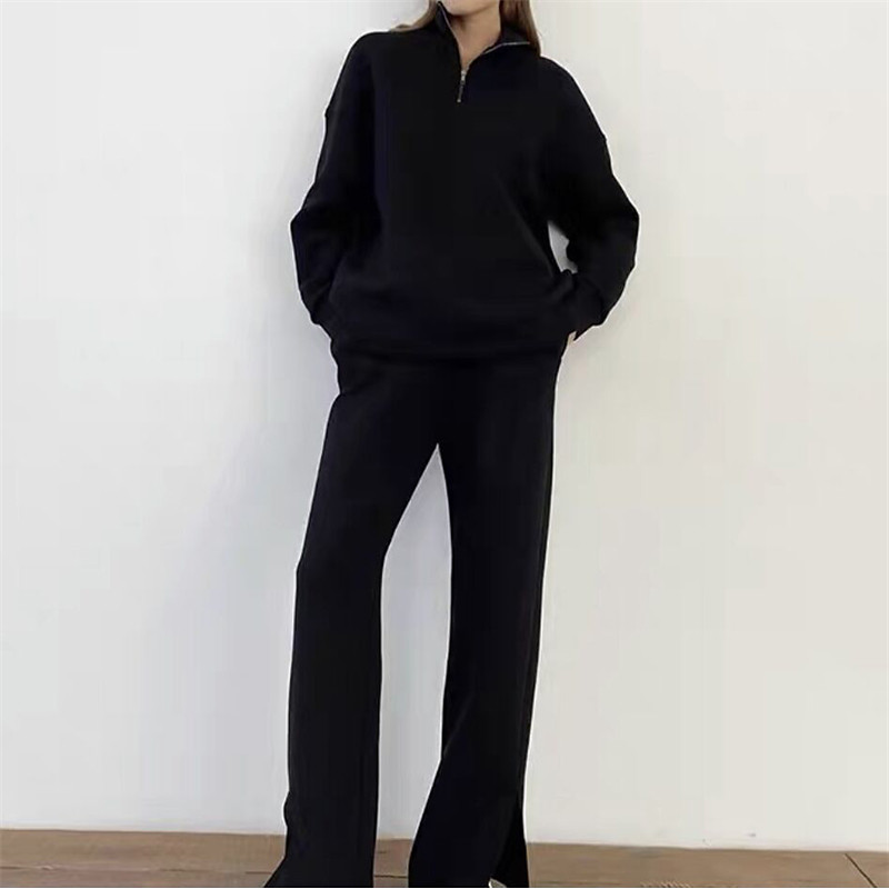 Women's Elegant Warm Fashion Two Piece Sets Tracksuit Pants Sets Long Sleeve Bishop Sleeve Crew Neck Graphic Letter Print Outdoor Vacation Daily Black Pink Dark Pink Spring Regular Fit