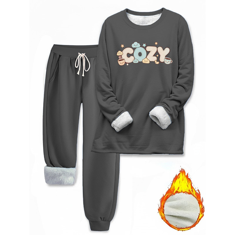 Women's Warm Daily Two Piece Sets Tracksuit Pants Sets Long Sleeve Crew Neck Letter Drawstring Print Casual Daily Black Dark Pink Blue Fall Regular Fit