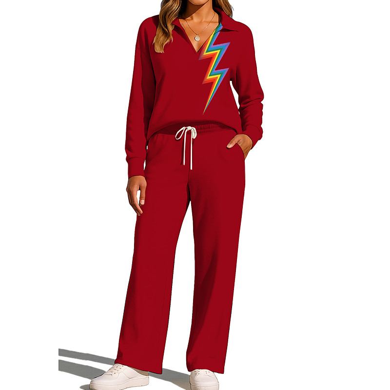 Women's Sweatshirt Tracksuit Sweatpants Drawstring Pocket Rainbow Jacket and Sweatpants Athletic Clothing Set Loungewear Summer Dark Grey Red Gym Workout Casual Workout Thermal Warm Soft Baggy Long