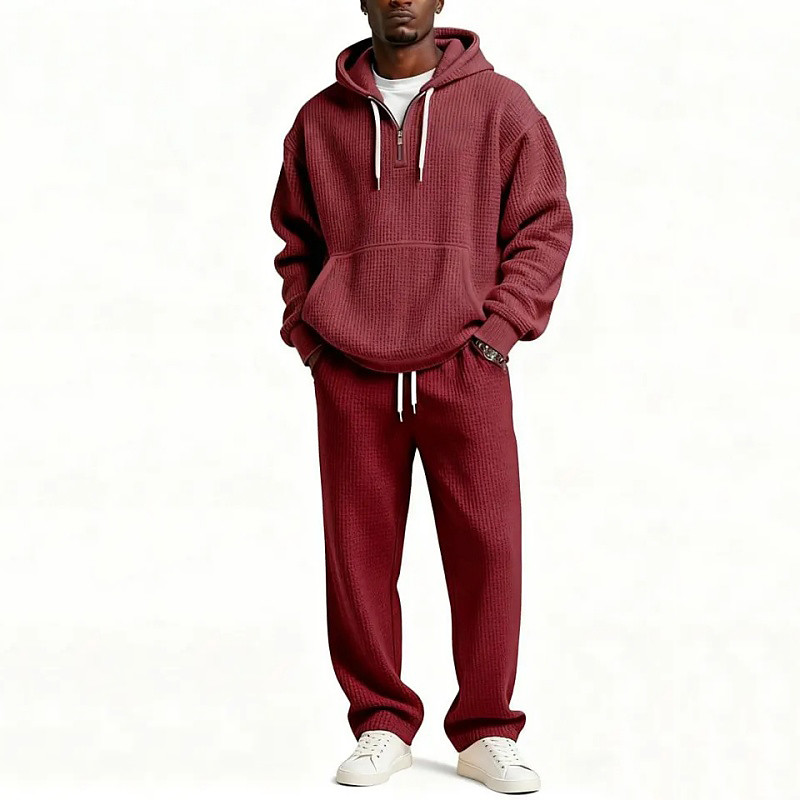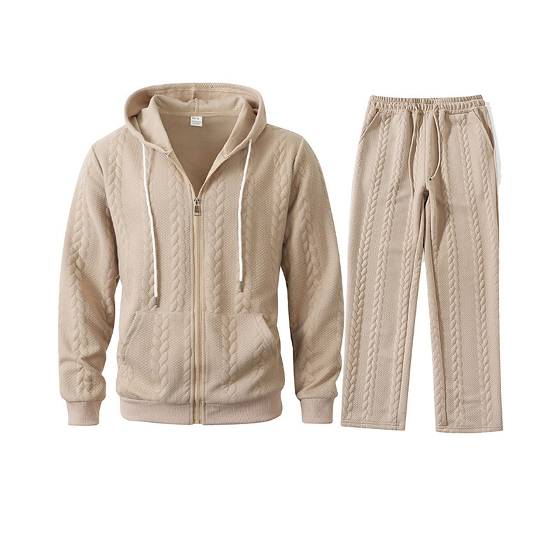 Men's Tracksuit Hoodie Pants Outfit Set Hoodies Set Hoodie Outdoor Daily Sports Jacquard Drawstring Zip Up Plain Beige Light Blue Polyester Activewear Fashion Streetwear Spring
