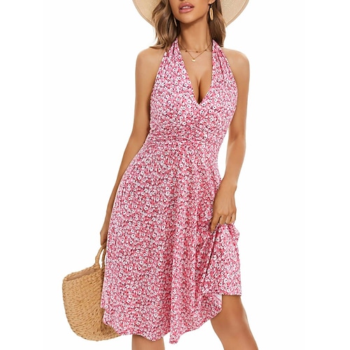 Per donna Mini Abito Abito a trapezio Vestito all'americana Vacanza Casual All'aperto Uscire Vestibilità regolare Floreale Grafico Senza Maniche All'americana Blu Giallo Rosa Rosso Estate Primavera