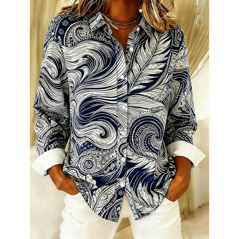 Women's Shirt Graphic Abstract Stylish Casual Long Sleeve Shirt Collar Regular Tops Daily Buttons Print Blue Spring Fall Winter