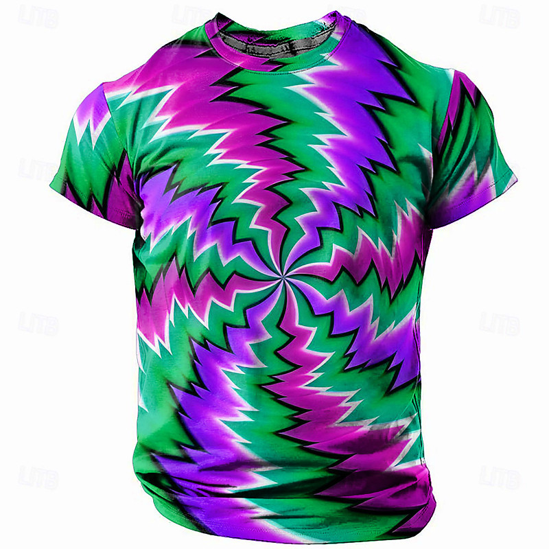 Men's Graphic Optical Illusion T Shirt Short Sleeve T shirt 3D Print Round Neck Shirt Streetwear Basic Going out Black Yellow Red Summer Clothing Apparel Asian Size S M L XL 2XL 3XL