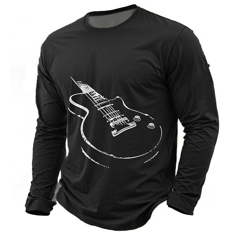 Men's Music Guitar T Shirt Long Sleeve T shirt 3D Print Crew Neck Shirt Fashion Daily Basic Casual Daily Street Blue Black Red Summer Spring Clothing Apparel S M L XL XXL XXXL