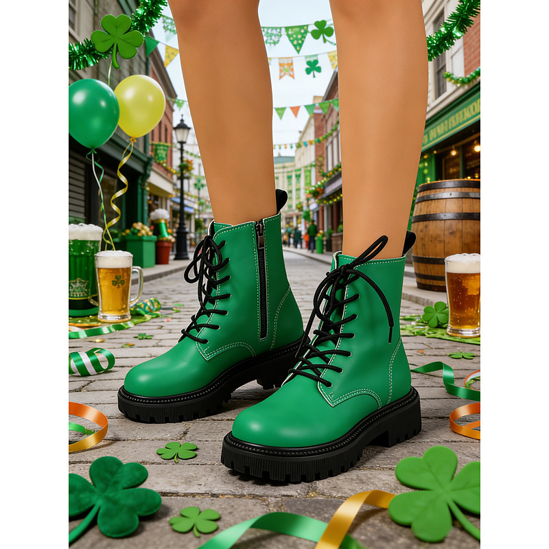 Women's Green Lace-up Boots with St. Patrick's Day Vibe – Stylish Durable Boots with Sturdy Soles, Ideal for Parades, Outdoor St. Patrick's Day Celebrations and Festive Adventures