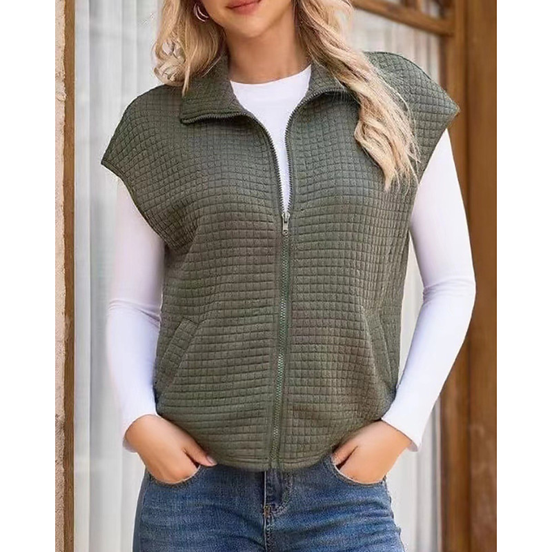 Women's Sweater Sweater Vest Streetwear Casual Solid Color Shirt Collar Zipper Pocket Knitted Sleeveless Regular Tops Knit Daily Holiday Going out Black White Fall Winter