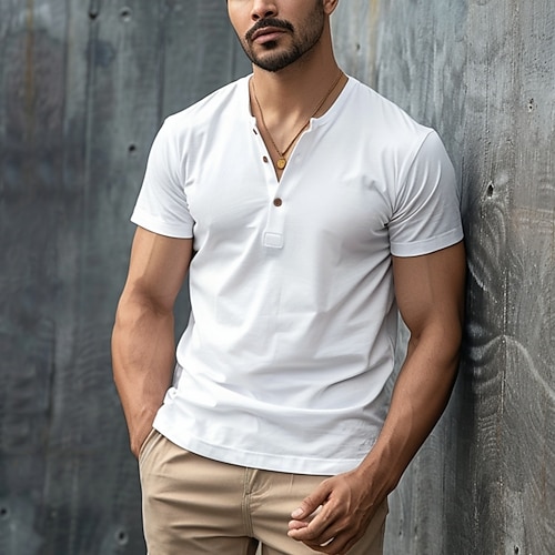 Per uomo maglietta Camicia Henley Liscio Henley Informale Per eventi Manica corta Abbigliamento Di tendenza Leggero Muscolo Grande e alto