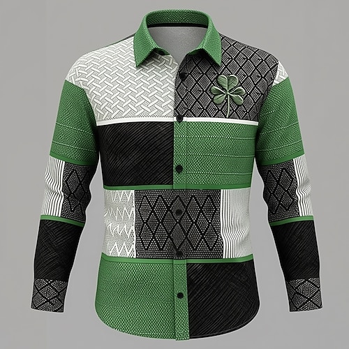 Festa di San Patrizio Per uomo Blocco di colori Trifoglio Patchwork Camicia Camicia con Bottoni Manica Lunga Vintage Retrò Feste Ferie Primavera Autunno Collo ripiegato Stampa 3D Camicia tipo lino