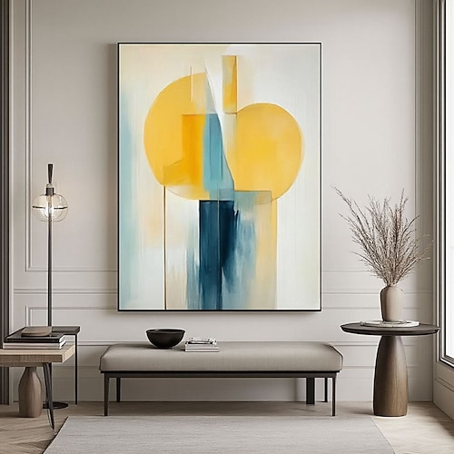 handgemaltes abstraktes blaues Ölgemälde, handgemaltes abstraktes gelbes Gemälde, blaues Wandgemälde, modernes gelbes Gemälde, Wandkunst, minimalistische blaue Wandkunst, kontrastierende Farben,