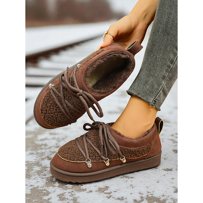 Women's Brown Faux Suede Fleece Lined Lace-Up Shoes – Cozy Winter Casual Flats for Outdoor, Travel and Cold Weather
