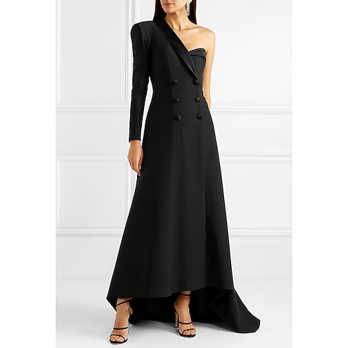 Per donna Abito da smoking Linea ad A Matrimonio Formale Ospite di nozze Raso Tessuto elasticizzato a 4 vie Elegante Vintage Manica Lunga Lunghezza al pavimento Asimmetrico Revers dentellati Cerniera